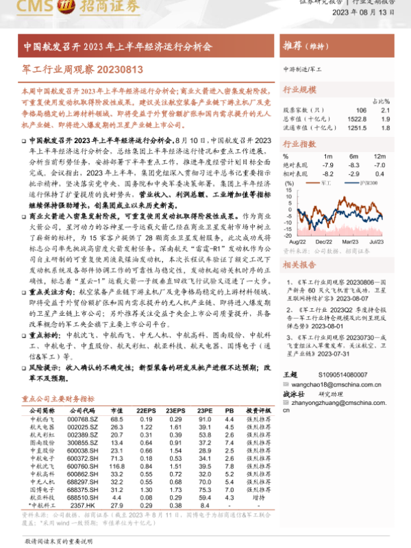 【海通证券】【20230813】军工行业周观察:中国航发召开2023年上半年经济运行分析会-10页