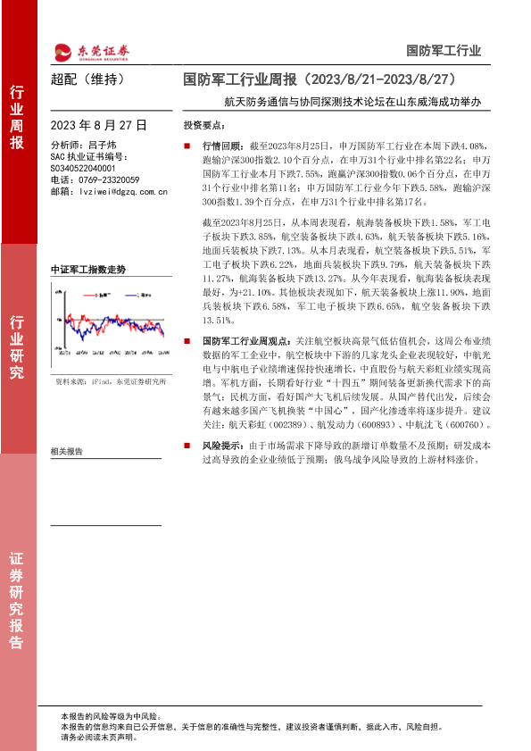 【东莞证券】【20230827】20230827-东莞证券-国防军工行业周报:航天防务通信与协同探测技术论坛在山东威海成功举办-11页