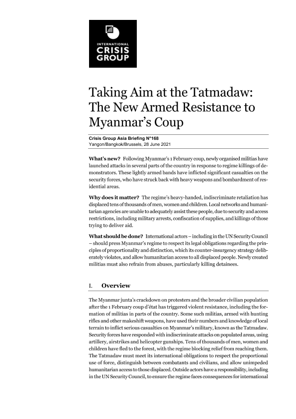 【国际危机组织】【20210628】瞄准缅甸政府军:缅甸政变的新武装抵抗-20页