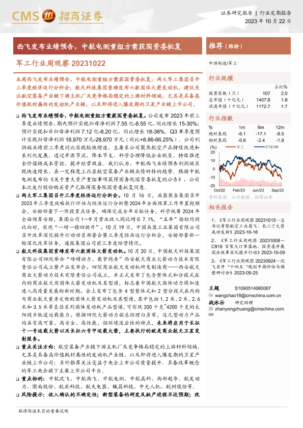 【海通证券】【20231022】20231022-招商证券-军工行业周观察:西飞发布业绩预告,中航电测重组方案获国资委批复-12页