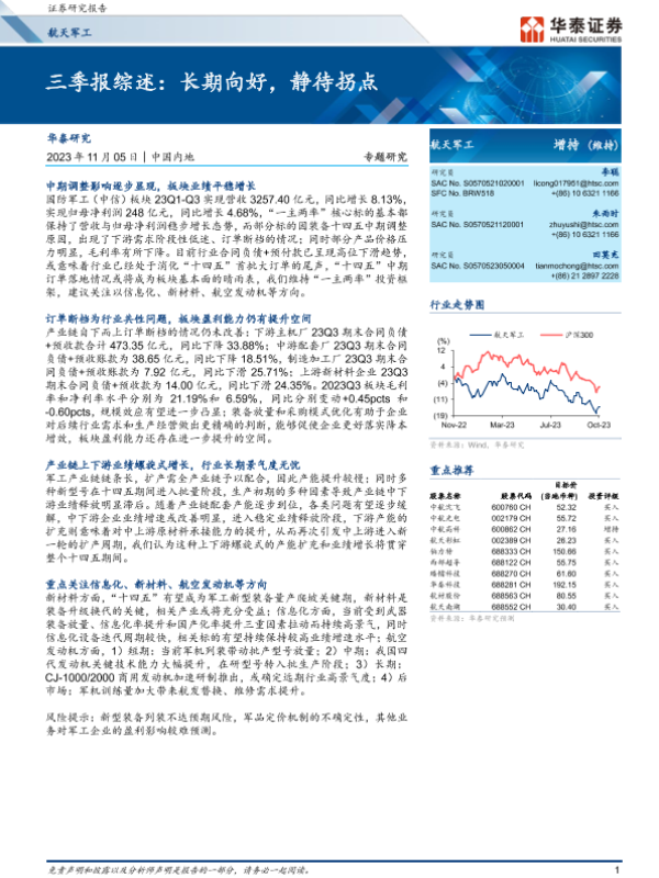 【华泰证券】【20231105】航天军工三季报综述:长期向好,静待拐点-20页