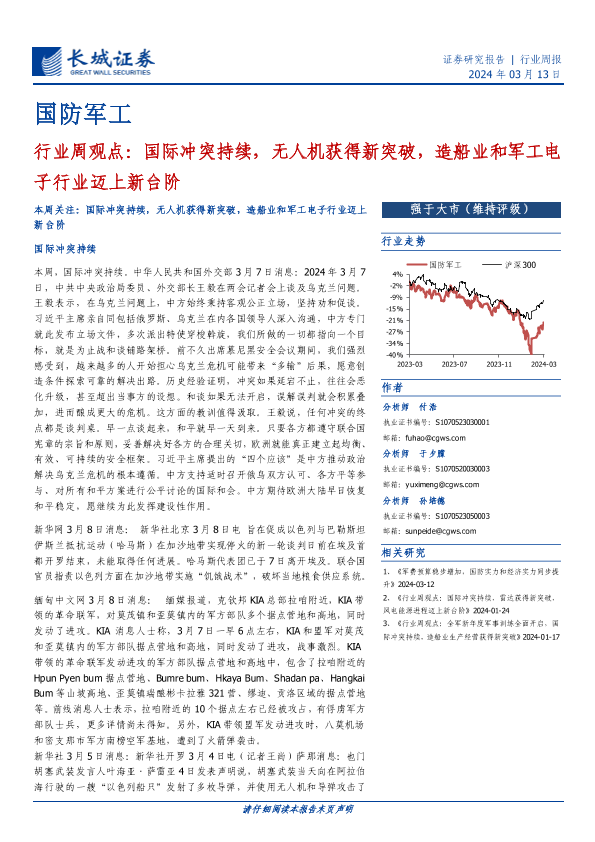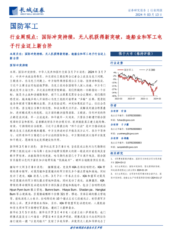 【长城证券】【20240313】国防军工行业周观点:国际冲突持续,无人机获得新突破,造船业和军工电子行业迈上新台阶-17页