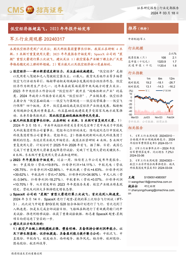【海通证券】【20240318】20240318-招商证券-军工行业周观察 :低空经济振翅高飞,2023年年报开始发布-12页