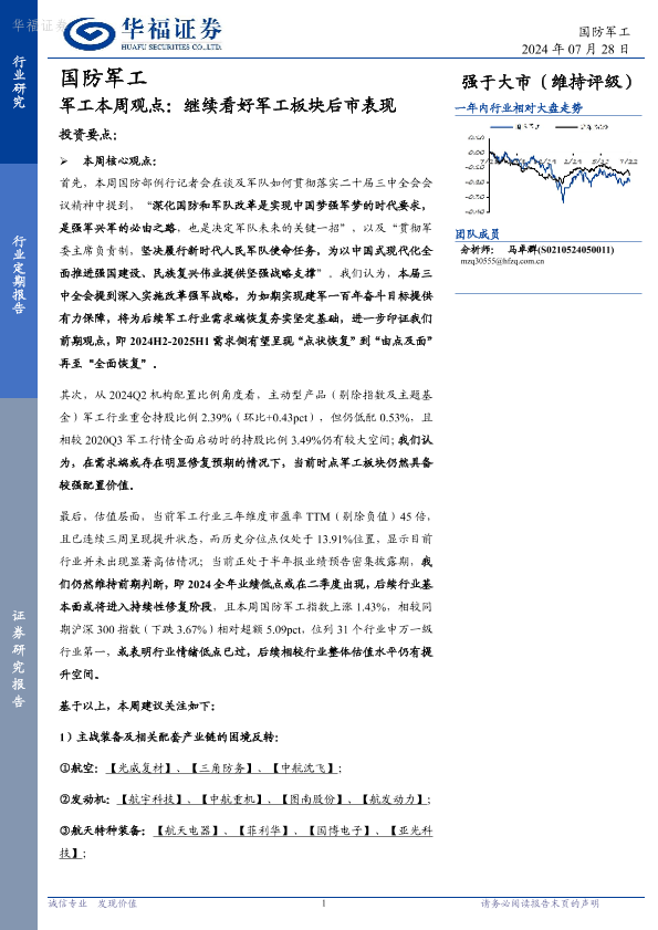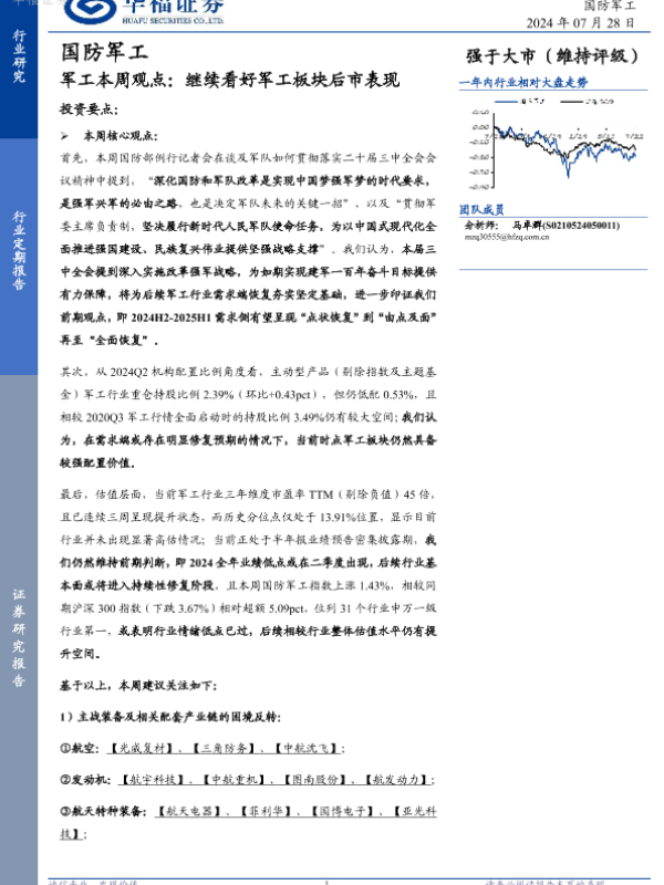 【华福证券】【20240728】20240728-华福证券-军工本周观点:继续看好军工板块后市表现-15页