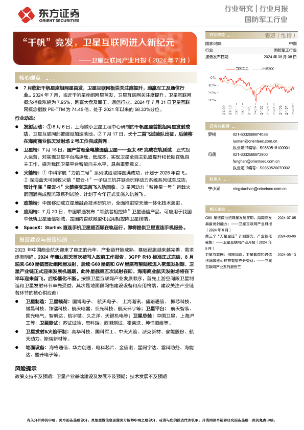 【东方证券】【20240808】卫星互联网产业月报(2024年7月):“千帆”竞发,卫星互联网进入新纪元-17页