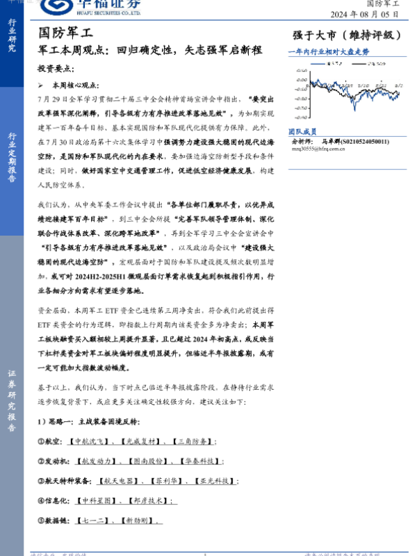 【华福证券】【20240805】军工本周观点:回归确定性,矢志强军启新程-15页