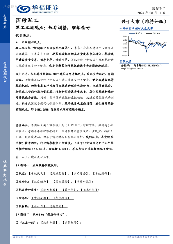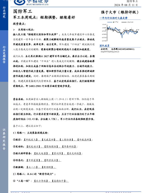 【华福证券】【20240811】军工本周观点:短期调整,继续看好-16页