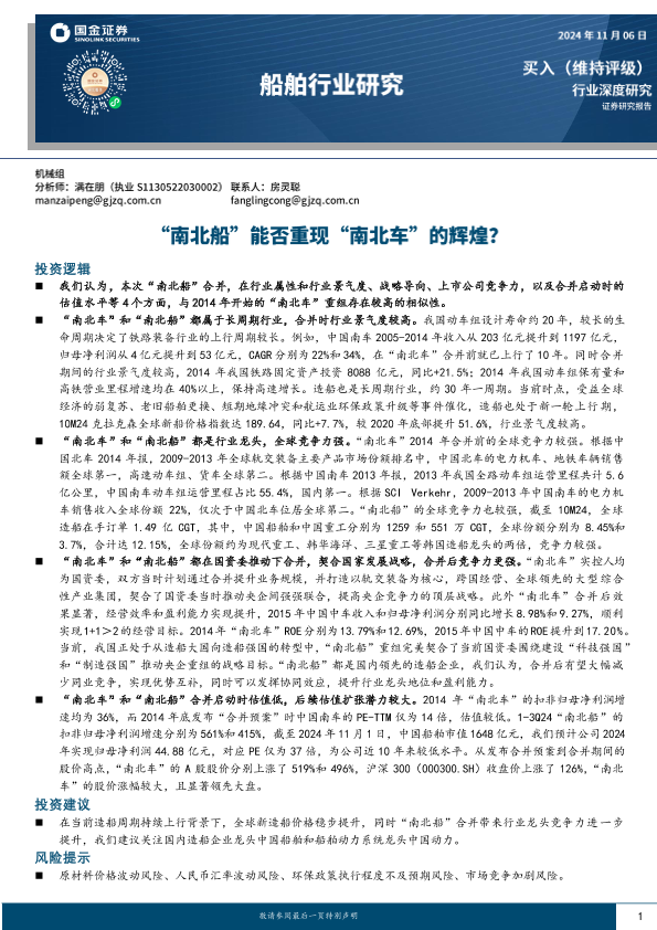 【国金证券】【20241106】20241106-国金证券-船舶行业研究:“南北船”能否重现“南北车”的辉煌?-39页
