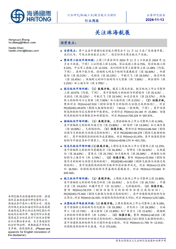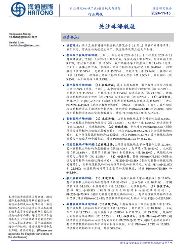 【海通国际】【20241113】20241113-海通国际-航空航天与国防行业周报:关注珠海航展-15页