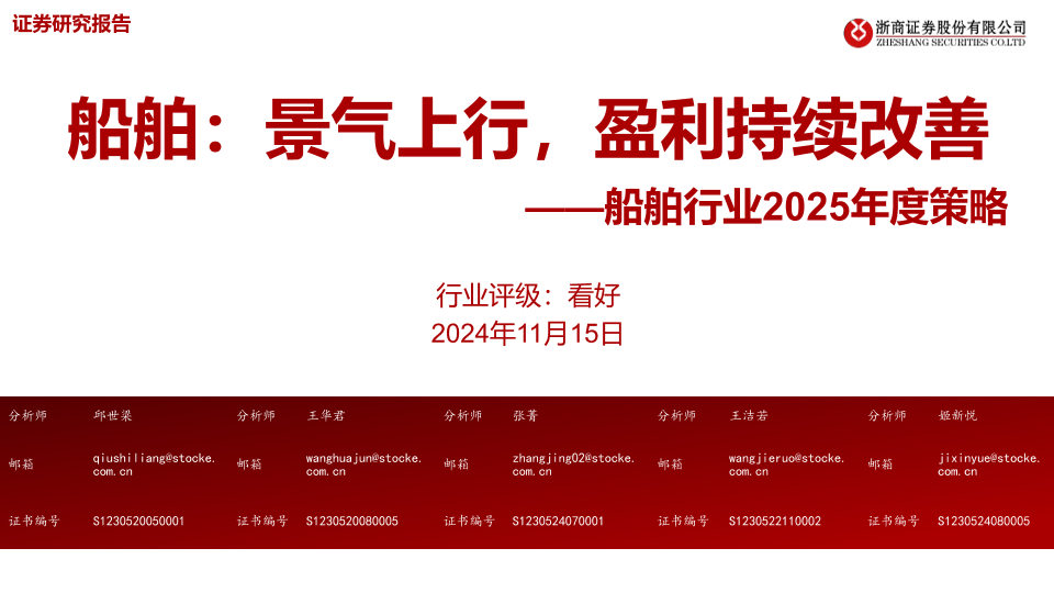 【浙商证券】【20241115】船舶:景气上行,盈利持续改善——船舶行业2025年度策略-37页
