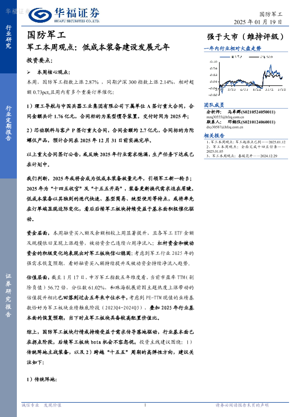 2025展望 低成本装备 军工 国防建设 行业分析