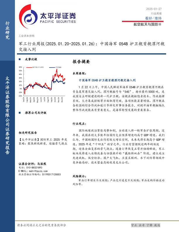 【太平洋证券】【20250127】军工行业周报:中国海军054B护卫舰首舰漯河舰交接入列-12页