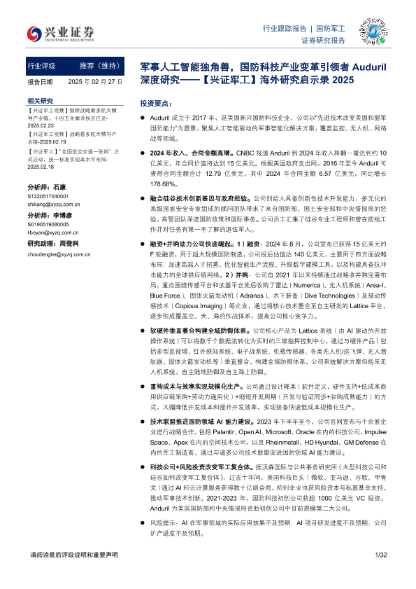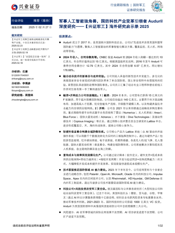 【兴业证券】【20250227】海外研究启示录2025:军事人工智能独角兽,国防科技产业变革引领者Auduril深度研究-32页