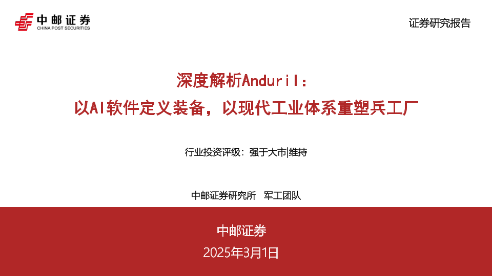 【中邮证券】【20250301】深度解析Anduril:以AI软件定义装备,以现代工业体系重塑兵工厂-46页