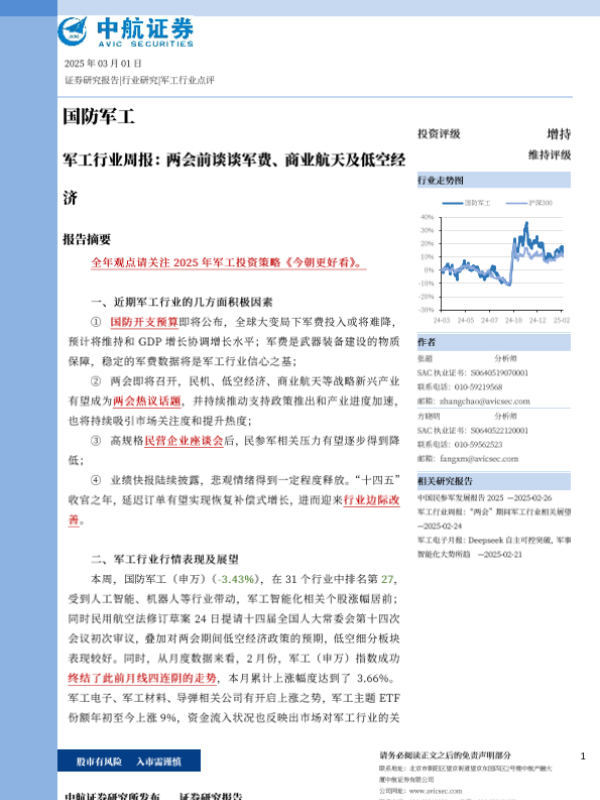 【中航证券】【20250301】军工行业周报:两会前谈谈军费、商业航天及低空经济-46页