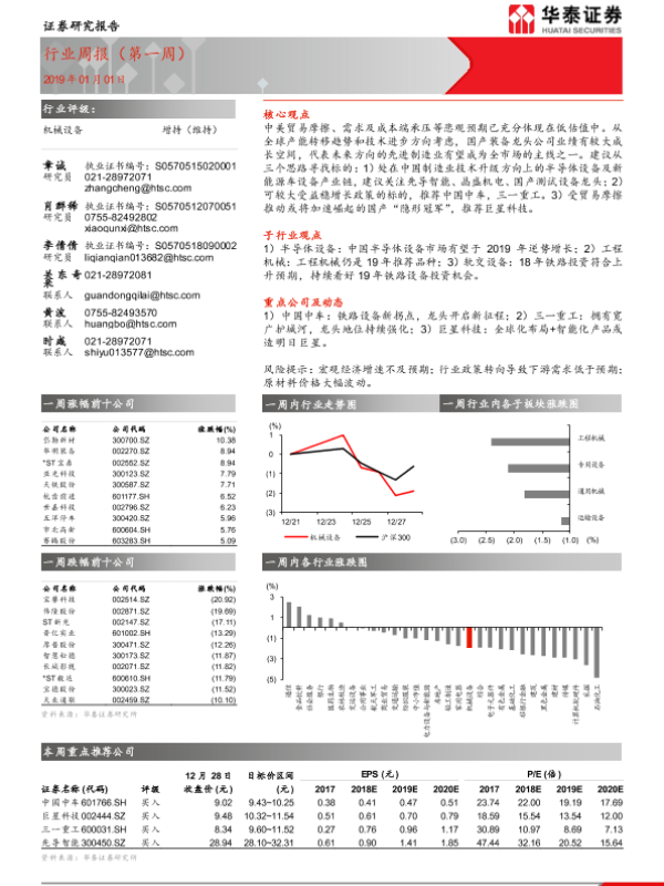 【华泰证券】【20190101】20190101-华泰证券-机械设备行业周报(第一周)-14页