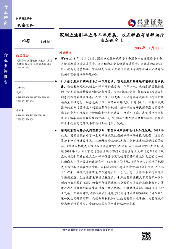 【兴业证券】【20190101】深圳立法引导立体车库发展,以点带面有望带动行业加速向上-6页