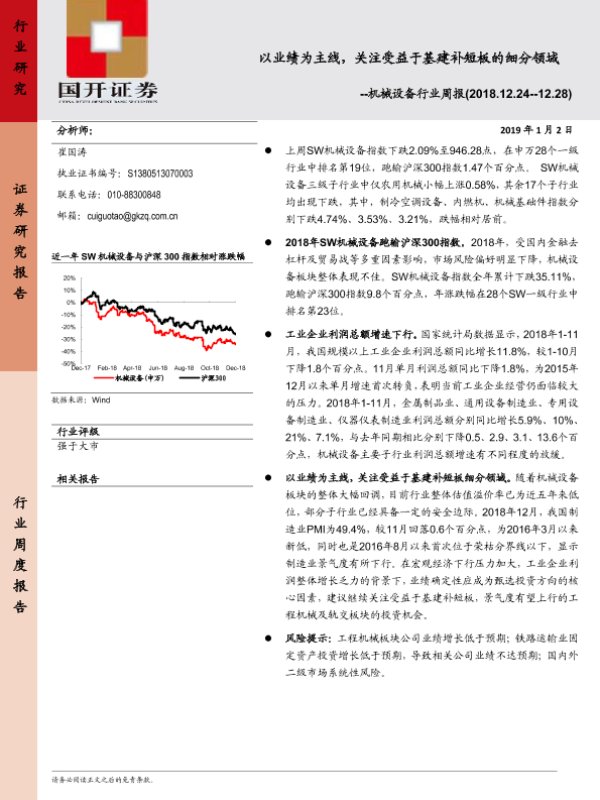 【国开证券】【20190102】20190102-国开证券-机械设备行业周报:以业绩为主线,关注受益于基建补短板的细分领域-10页