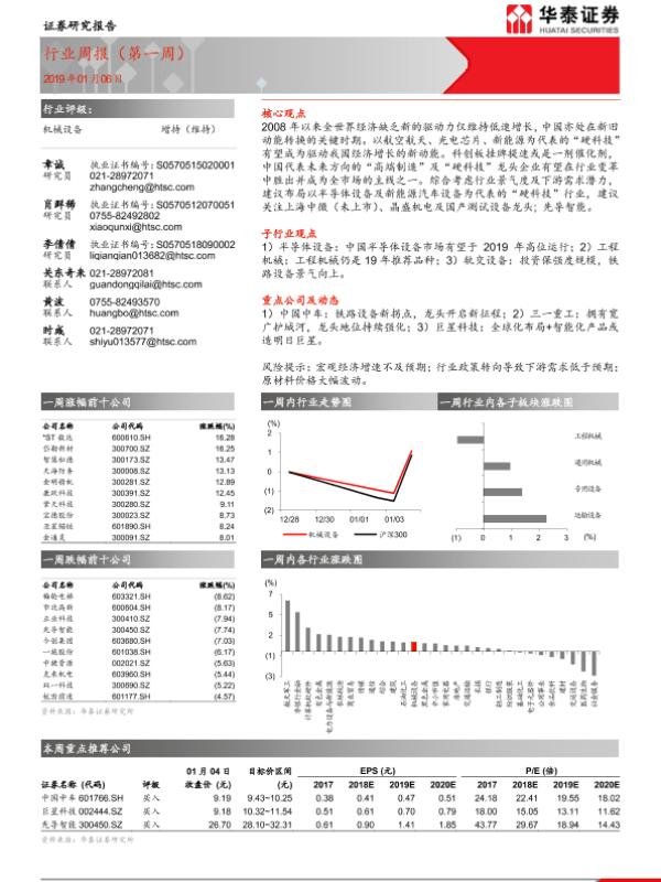 【华泰证券】【20190106】20190106-华泰证券-机械设备行业周报(第一周)-13页