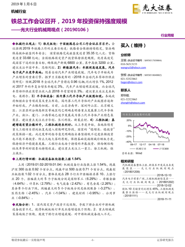 【光大证券】【20190106】光大行业机械周观点:铁总工作会议召开,2019年投资保持强度规模-14页