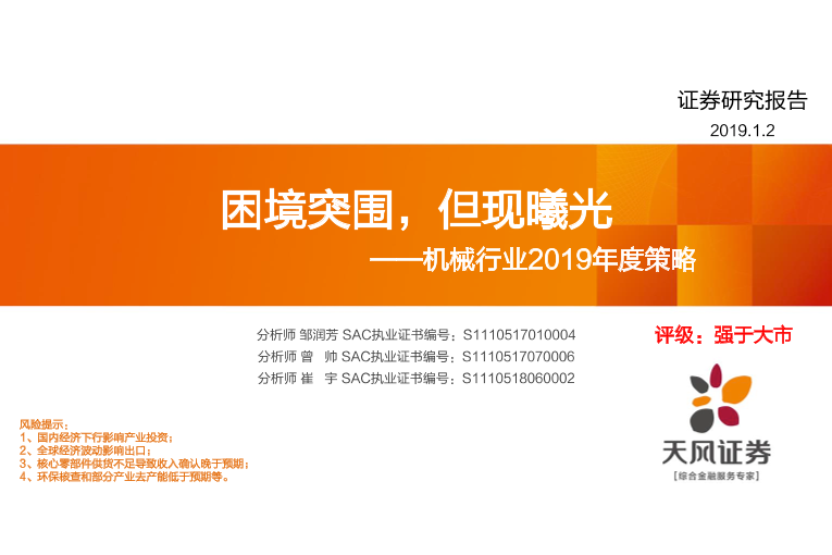 【天风证券】【20190102】机械行业2019年度策略:困境突围,但现曦光-89页