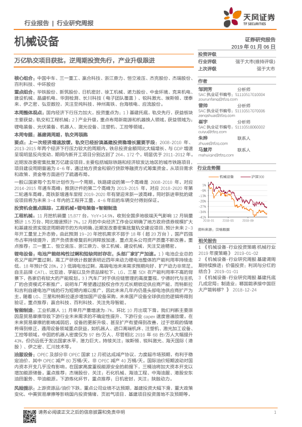 【天风证券】【20190106】20190106-天风证券-机械设备行业研究周报:万亿轨交项目获批,逆周期投资先行,产业升级跟进-21页