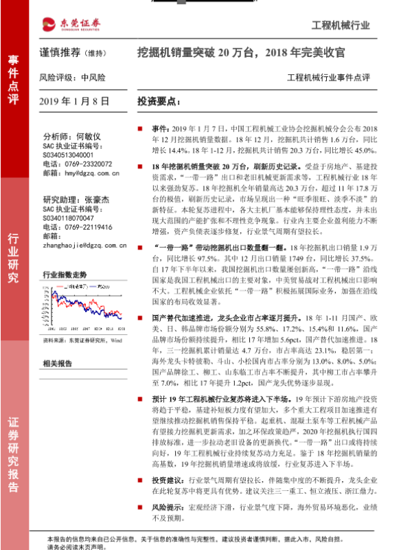 【东莞证券】【20190108】工程机械行业事件点评:挖掘机销量突破20万台,2018年完美收官-2页