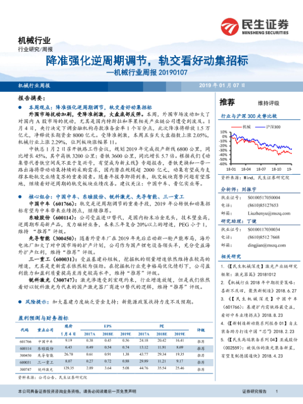 【民生证券】【20190107】20190107-民生证券-机械行业周报:降准强化逆周期调节,轨交看好动集招标-14页