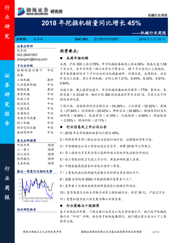 【渤海证券】【20190110】20190110-渤海证券-机械行业周报:2018年挖掘机销量同比增长45%-12页