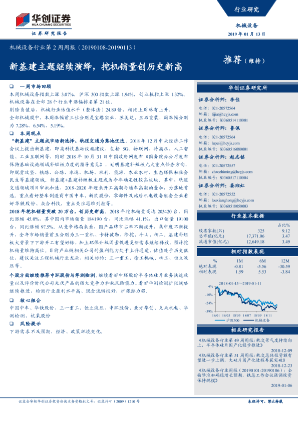 【华创证券】【20190113】机械设备行业第2周周报:新基建主题继续演绎,挖机销量创历史新高-12页