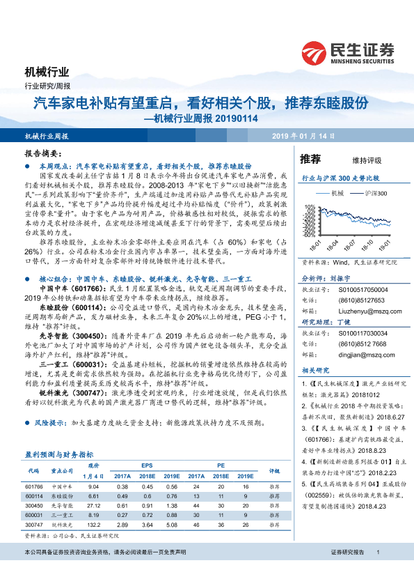 【民生证券】【20190114】20190114-民生证券-机械行业周报:汽车家电补贴有望重启,看好相关个股,推荐东睦股份-14页