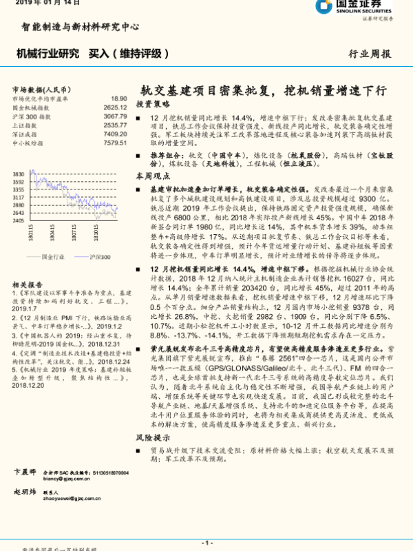 【国金证券】【20190114】机械行业研究:轨交基建项目密集批复,挖机销量增速下行-13页