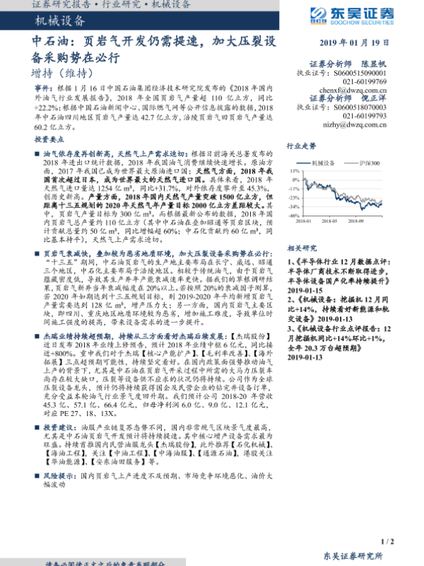 【东吴证券】【20190119】中石油:页岩气开发仍需提速,加大压裂设备采购势在必行-2页