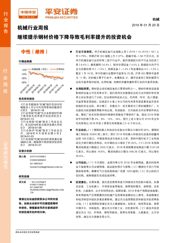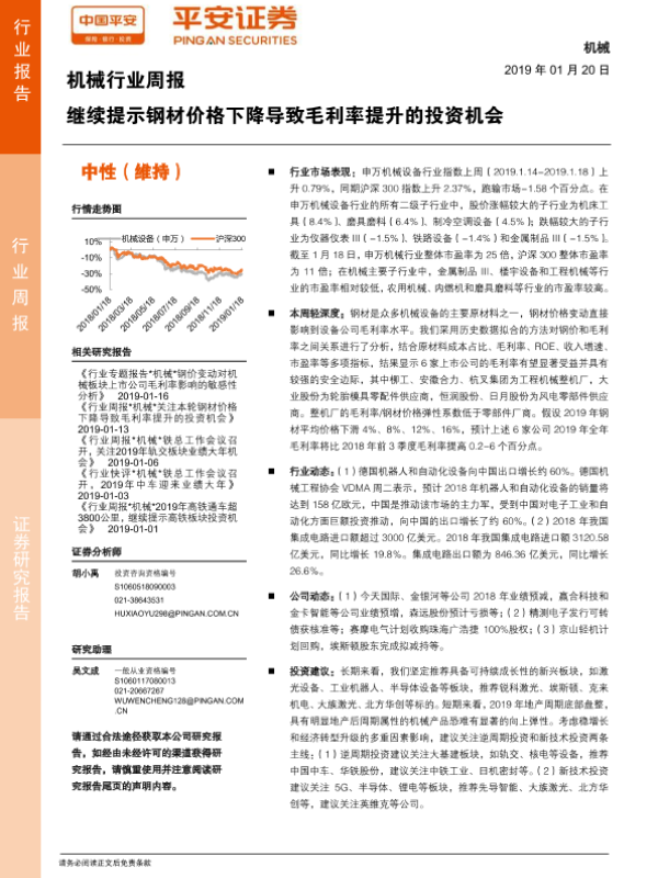 【平安证券】【20190120】机械行业周报:继续提示钢材价格下降导致毛利率提升的投资机会-11页