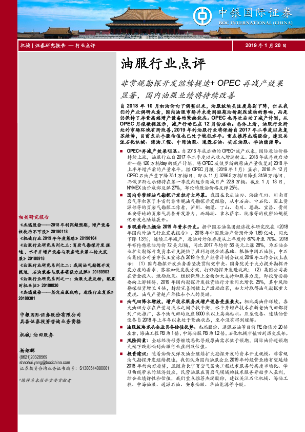 【中银证券】【20190120】油服行业点评:非常规勘探开发继续提速+OPEC再减产效果显著,国内油服业绩将持续改善-4页