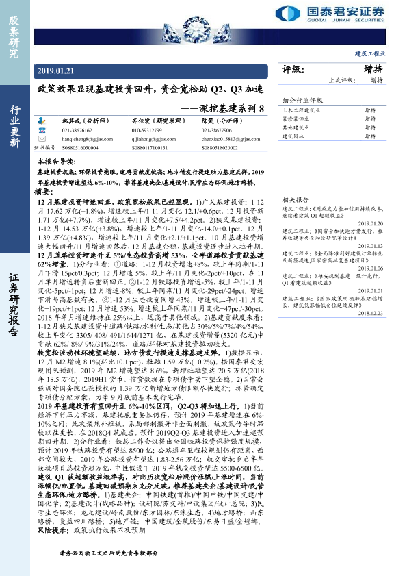 【国泰君安证券】【20190121】政策效果显现基建投资回升,资金宽松助Q2、Q3加速-3页