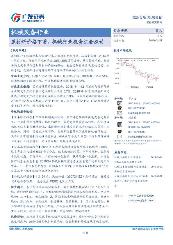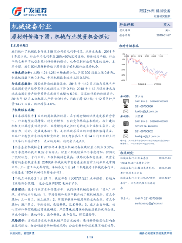 【广发证券】【20190127】机械设备行业:原材料价格下滑,机械行业投资机会探讨-19页