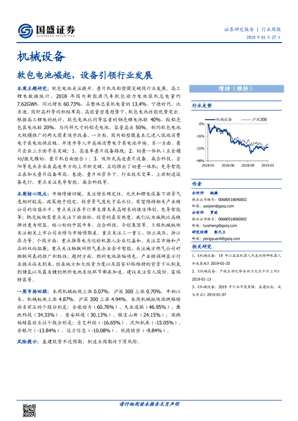 【国盛证券】【20190127】机械设备行业周报:软包电池崛起,设备引领行业发展-17页