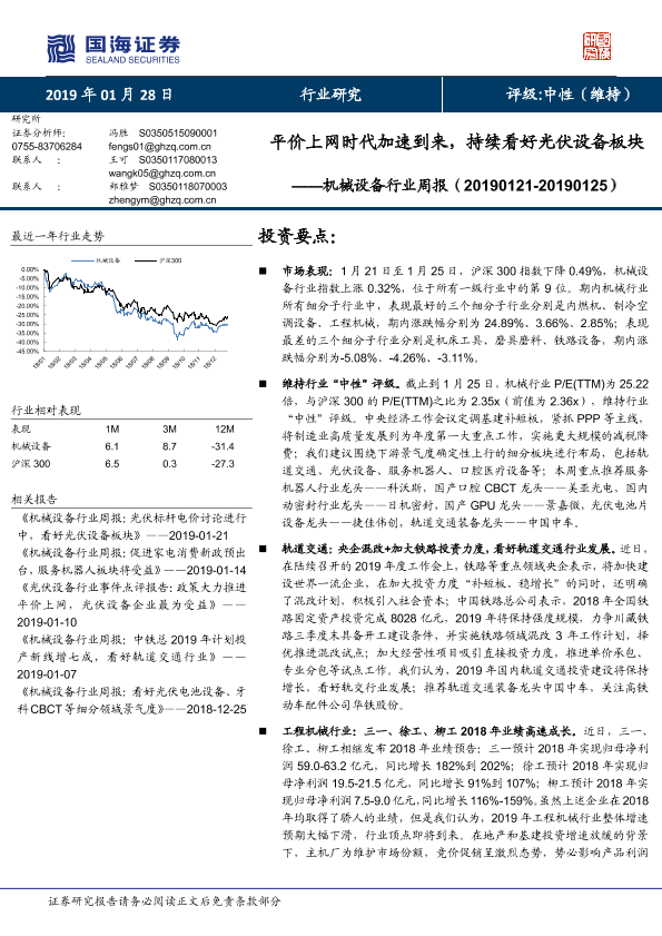 【国海证券】【20190128】机械设备行业周报:平价上网时代加速到来,持续看好光伏设备板块-24页