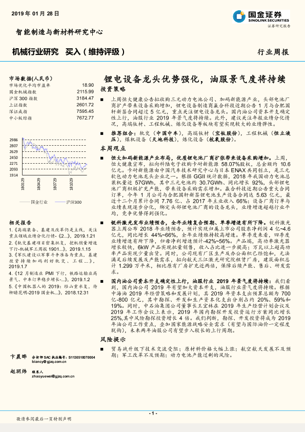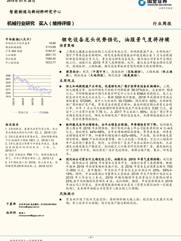 【国金证券】【20190128】20190128-国金证券-机械行业研究周报:锂电设备龙头优势强化,油服景气度将持续-13页