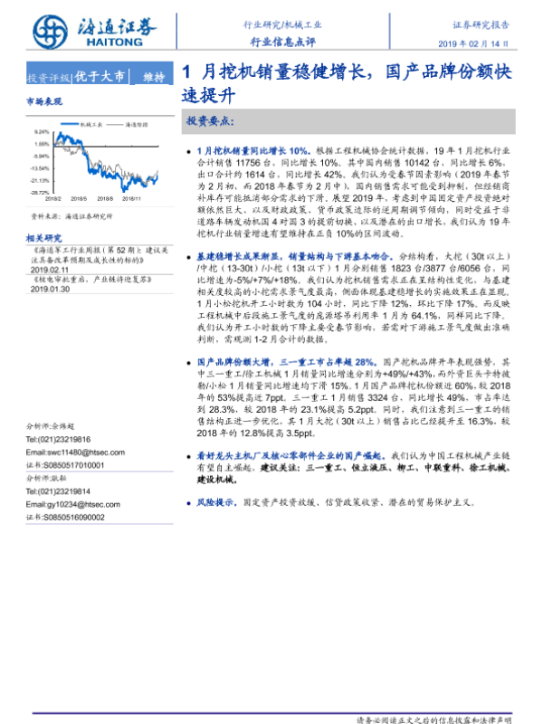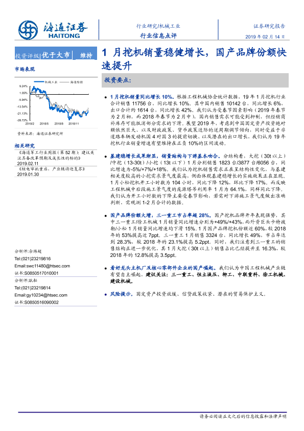 【海通证券】【20190214】机械工业行业信息点评:1月挖机销量稳健增长,国产品牌份额快速提升-2页
