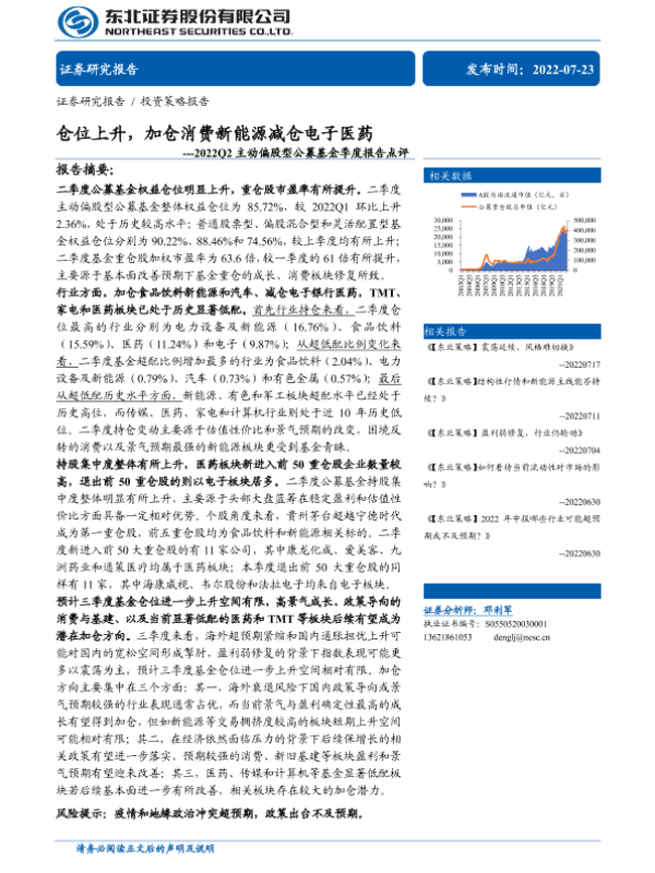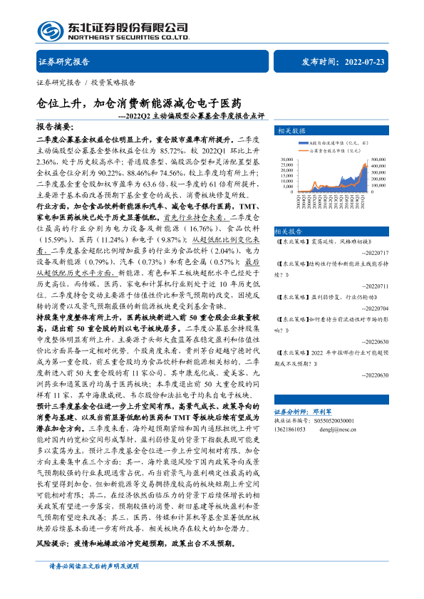 【东北证券】【20220723】2022Q2主动偏股型公募基金季度报告点评:仓位上升,加仓消费新能源减仓电子医药-15页