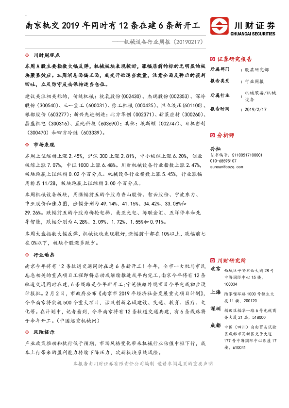 【川财证券】【20190217】机械设备行业周报:南京轨交2019年同时有12条在建6条新开工-8页
