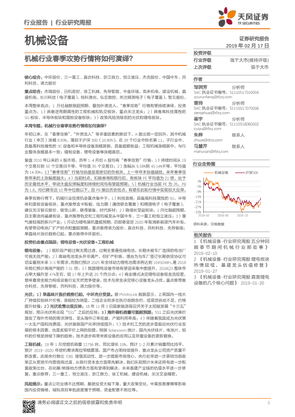 【天风证券】【20190217】机械设备行业研究周报:机械行业春季攻势行情将如何演绎?-23页