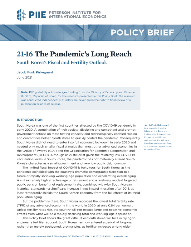 【彼得森经济研究所】【202106】大流行的长期影响:韩国的财政和生育前景-22页