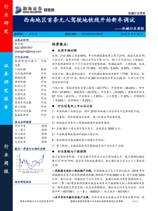 【渤海证券】【20190226】机械行业周报:西南地区首条无人驾驶地铁线开始新车调试-11页