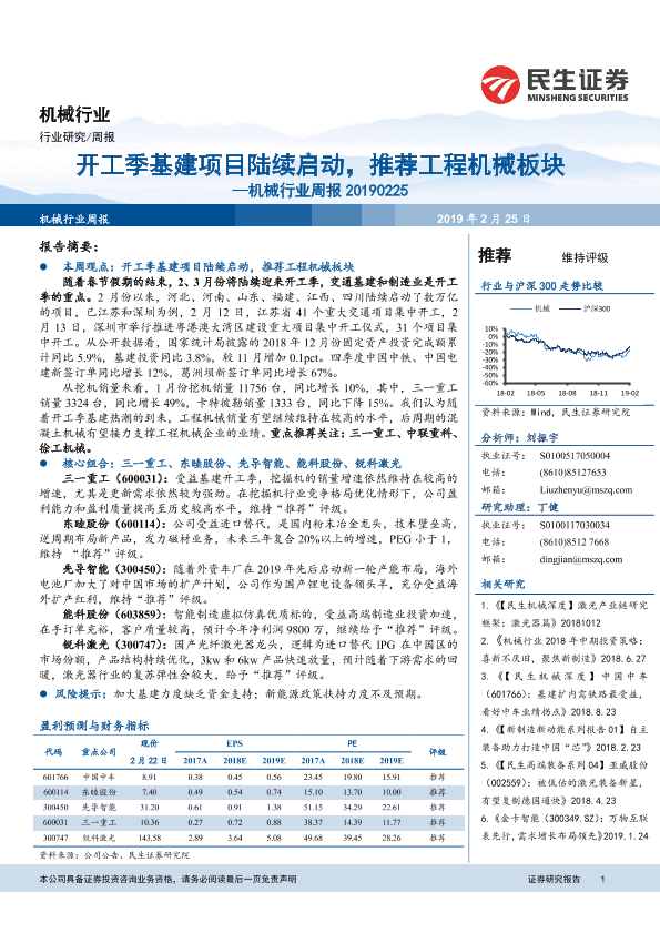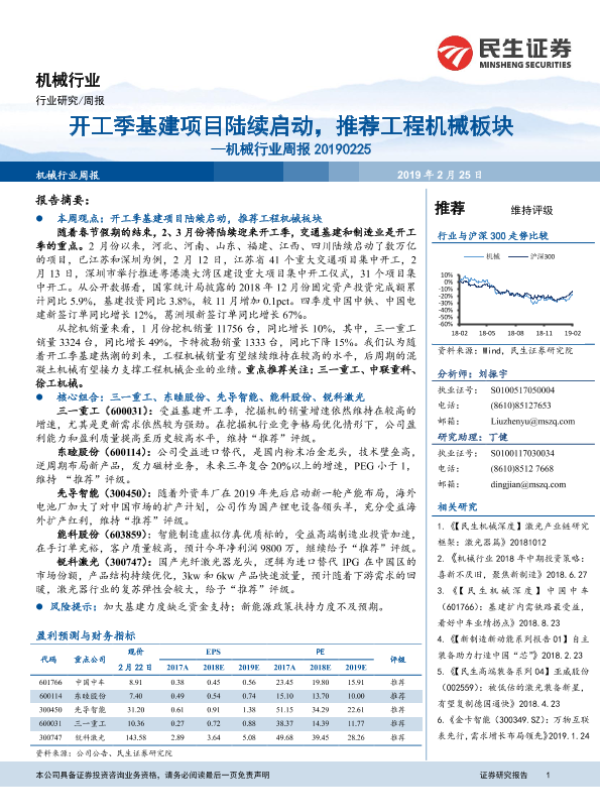 【民生证券】【20190225】机械行业周报:开工季基建项目陆续启动,推荐工程机械板块-17页