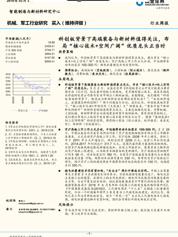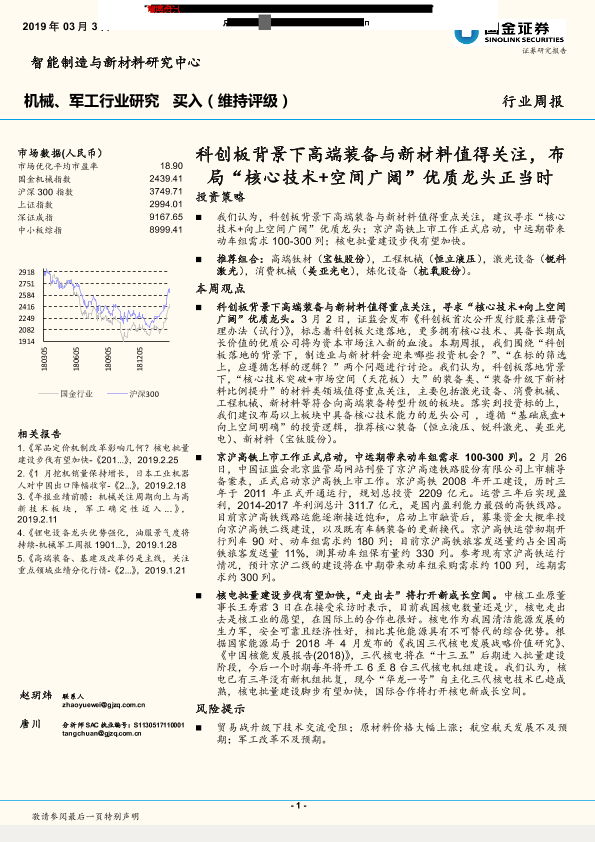 【国金证券】【20190303】20190303-国金证券-机械、军工行业研究:科创板背景下高端装备与新材料值得关注,布局“核心技术+空间广阔”优质龙头正当时-15页