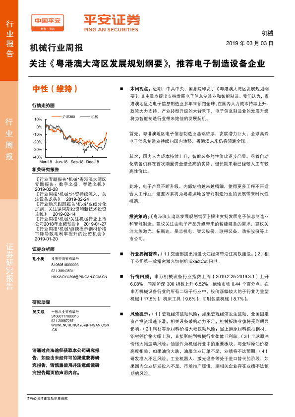 【平安证券】【20190303】机械行业周报:关注《粤港澳大湾区发展规划纲要》,推荐电子制造设备企业-5页