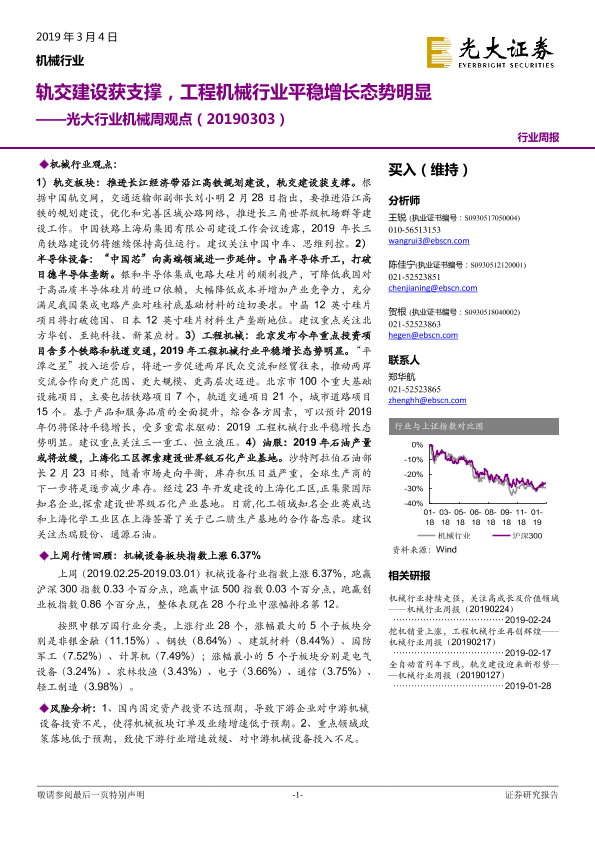【光大证券】【20190304】光大行业机械周观点:轨交建设获支撑,工程机械行业平稳增长态势明显-19页
